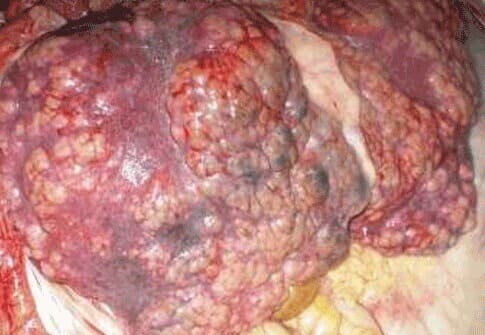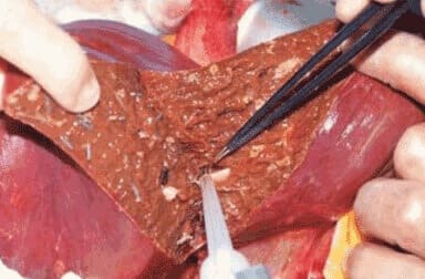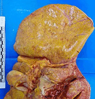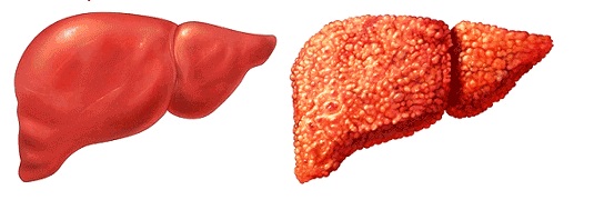 El hígado aumenta de tamaño y su función puede verse alterada. Debido a la síntesis de tejido conjuntivo, se produce fibrosis, que a su vez suele convertirse en cirrosis, una enfermedad en la que sólo hay dos opciones, el trasplante de un órgano donado o la muerte.
