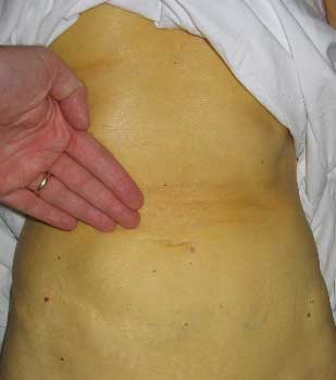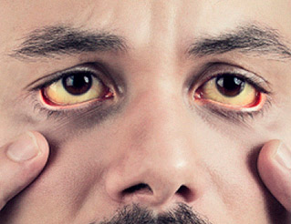 - Coloración amarillenta de las escleróticas de los ojos, de la piel, a veces de las mucosas de la orofaringe
